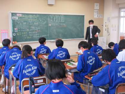 多項式、単項式等、新しい学習用語を学びながら、たくさんの式を分類していきます。ネームプレートを使って生徒を活躍させる工夫が見られました。