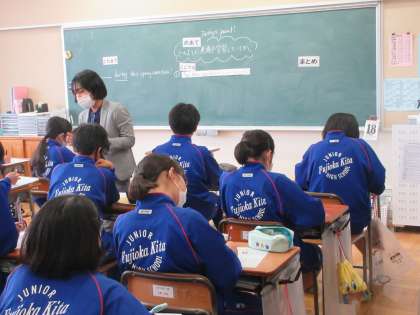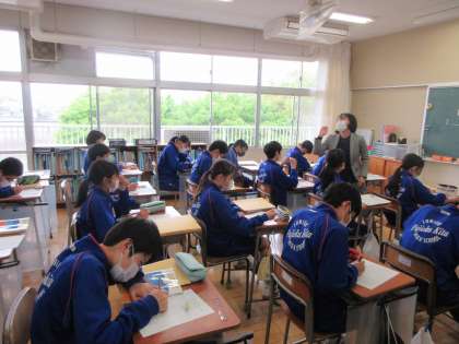 4月18日(月) 2年生英語の授業 公開日 2022/04/18 更新日 2022/04/18 できごと 「Oh〜Good!」「Nice!」教室から先生や生徒が話すたくさんの英語が聞こえてきました。楽しそうに1年間の英語の授業での目標を考えました。