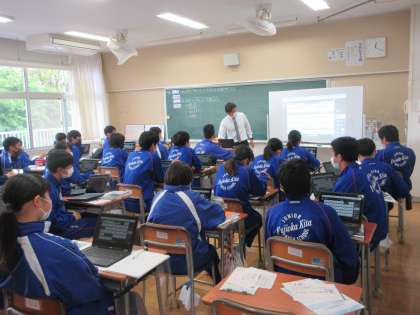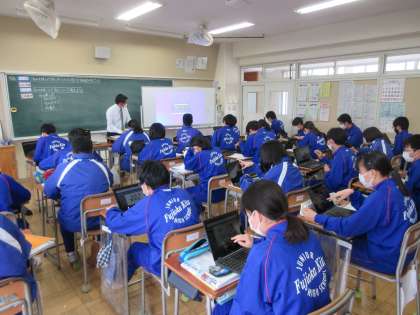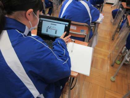 4月18日(月) 3年生理科の授業 公開日 2022/04/18 更新日 2022/04/18 できごと 3年生の理科では力のはたらきについてクロームブックを活用して勉強していました。先生が送ったシートに生徒は力の向きや大きさをそれぞれ書き込み、みんなの考えを比較しながら問題解決に向かっていました。