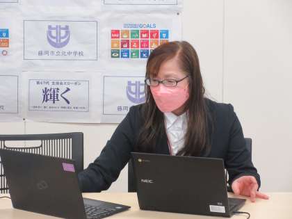 これから1年間、学習でタブレットパソコンを使っていくにあたり、パソコンの利便性と危険性について全校で学びました。ベネッセICT支援員の方を講師に、感染症対策を講じて西会議室と各教室をMeetでつなぎおこないました。