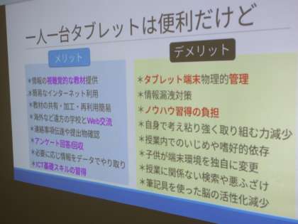 講師の先生の講義を受け、今年度、タブレットPCで身に付けたい力を各自が決め、そのためにどのようなことに気をつけるかを考えました。