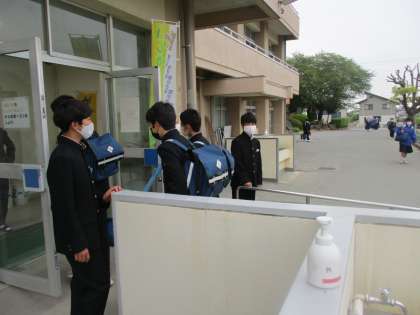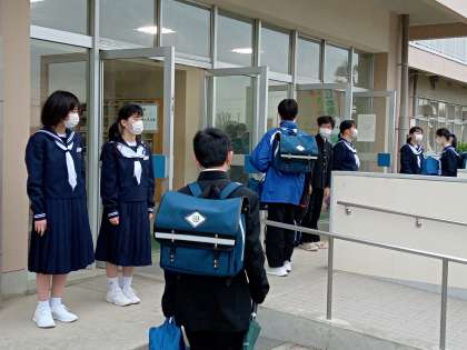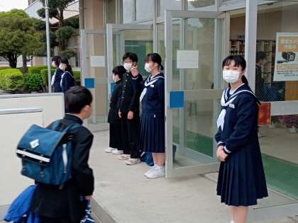 4月20日(水) あいさつ運動 公開日 2022/04/20 更新日 2022/04/20 できごと 4月20日(水)、生活委員会のよる朝のあいさつ運動が始まっています。 新年度、新たに生活委員になった生徒たち、1年生も生徒玄関に立って元気にあいさつ運動を行っていました。 マスクの下の笑顔を大切にしながら、朝から心地よい雰囲気を醸し出してくれています。