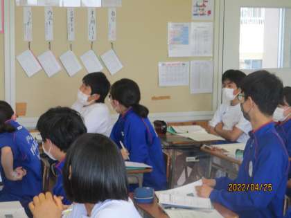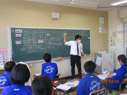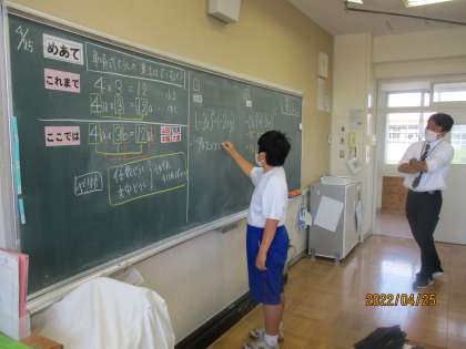 4月25日(月) 2年生数学の授業 公開日 2022/04/25 更新日 2022/04/25 できごと 2年生数学の授業の様子です。 単項式どうしの乗法はどのようにするのでしょうか? 「前に出て問題を解き、説明してください。」
