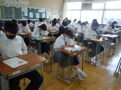 8:10〜朝読書の時間、本を開き、落ち着いた朝を迎えています。2年生の風格を感じた教室の様子でした。
