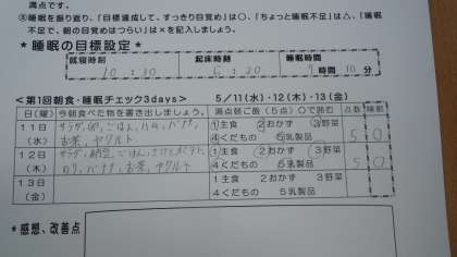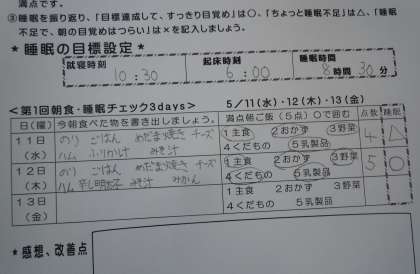 記入の様子をみると、朝食バランスを意識している人が目立ちました。ヘルスアップウィークのねらいを理解しているようです。味噌汁は熱中症予防に効果的と言われていますのでお勧めします。