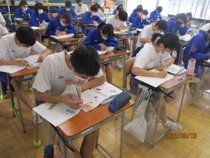 5月13日(金) 3年生社会科の授業 公開日 2022/05/13 更新日 2022/05/13 できごと 3年生社会科の授業の様子です。 義和団事件1900 日露戦争 1904 この二つの戦争について、どのように対立し、どのような結果になったのか、教科書や資料などから学びました。