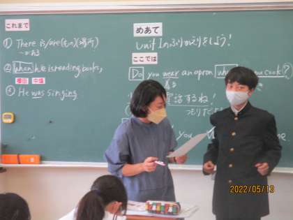 自分のヒーローについて相手に分かってもらえるように、これまでに習った知識をもとにして英文を考えました。