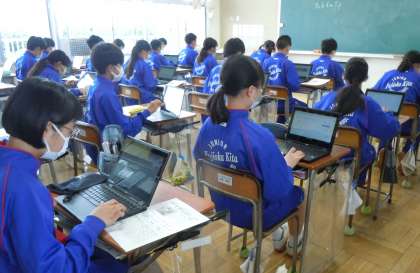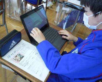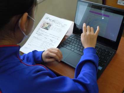 1年生、4校時、学活の時間です。1年生は、朝食睡眠チェック3daysの結果を初めて入力します。