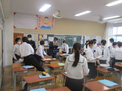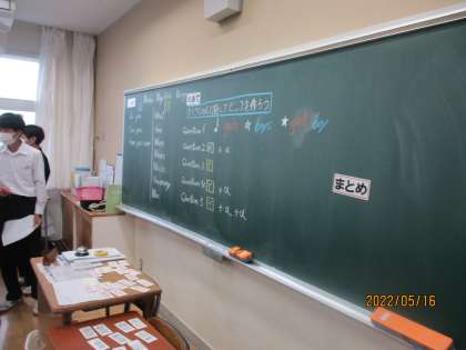 5月16日(月) 3年生英語の授業 公開日 2022/05/16 更新日 2022/05/16 できごと 3年生英語の授業の様子です。 今日はALTの先生を交えて、たくさんの人と話をすることでビンゴを作るゲームで盛り上がっていました。 私も、教室でうろうろしていたら、数名の生徒からの質問を受けました。 お役に立てれば幸いです。