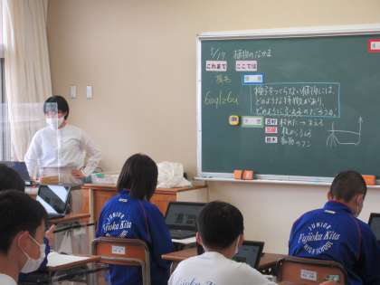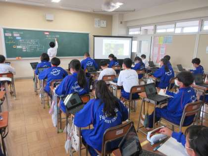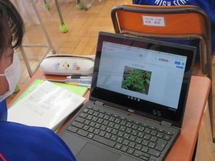 5月17日(火) 1年生理科の授業 公開日 2022/05/17 更新日 2022/05/17 できごと 1年生の理科では種子をつくらない植物の特徴について学びました。先生は「イヌワラビは高原学校でも見られるかもね」という言葉で、本時の学習と「このあと」をつないでいました。生徒は、植物への関心をさらに高めていました。