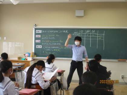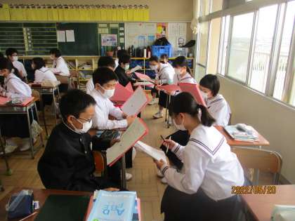 5月20日(金) 1年生英語の授業 公開日 2022/05/20 更新日 2022/05/20 できごと 1年生英語の授業の様子です。 今日は「私は、〜ではありません。」を表す英文を学びました。 この表現を使って、お互いの好みを予想し、当て合うゲームで、盛り上がっていました。