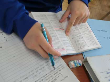 5月20日(金) 3年生英語の授業 公開日 2022/05/20 更新日 2022/05/20 できごと 今日のめあては「旅行の思い出を語ろう」。現在完了形の学習を生かして、自分が行ったことのある場所にまつわる思い出について英作文を書きました。辞書を使ったり、先生に質問したり、友達どうしで教え合ったり。楽しみながら学習していました。