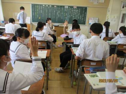 5月25日(水) 3年生国語の授業 公開日 2022/05/25 更新日 2022/05/25 できごと 3年生国語の授業の様子です。 「作られた「物語」をこえて」 作者の主張と論理の展開を評価しよう。 ・作者の主張に共感できますか? ・この文章は、説得力がありますか? 根拠をもとに自分の考えを決めて、グループ内で意見交流しました。