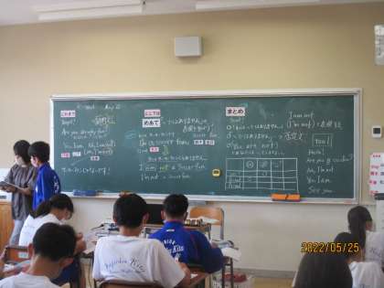 5月25日(水) 2年生英語の授業 公開日 2022/05/25 更新日 2022/05/25 できごと 2年生英語の授業の様子です。 「〜ではありません。の表現を学習しました。 I am a soccer fun. I am not a soccer fun.