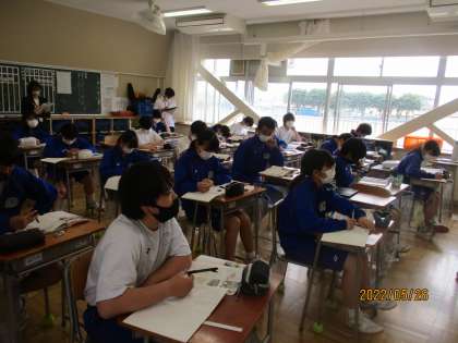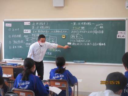 5月26日(木) 3年生社会科の授業 公開日 2022/05/26 更新日 2022/05/26 できごと 3年生社会科の授業の様子です。 第一次世界大戦はどのようにして起こったのだろう? それは、どんな戦争だったのだろう? 映像、資料集、教科書などをつかって、じっくり考えながら学びを進めていました。