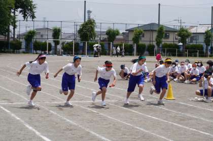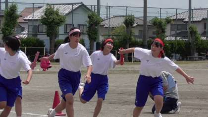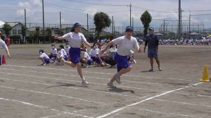 女子のリレー種目は4×100mです。クラスの声援を受け、一生懸命走りました。
