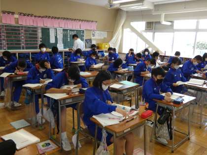 6月13日(月) 2年生理科の授業 公開日 2022/06/13 更新日 2022/06/13 できごと 2年生の理科の授業では、期末テスト対策として化学反応式の練習問題に取り組んでいました。今日の問題を繰り返し解いて、まずはしっかりと覚えてほしいと思います。