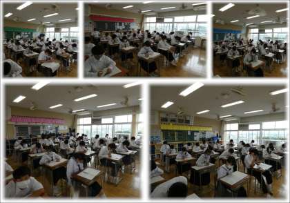 6月16日(木) 1学期期末テスト 公開日 2022/06/16 更新日 2022/06/16 できごと 15日(水)、16日(木)の2日間で1学期の期末テストを行いました。1年生にとっては初めての定期テスト、2年生にとっては先輩となっての初めてのテスト、そして3年生にとっては進路に関わる大切なテストとなります。 教室を覗くと、みな真剣な表情でテストに向かっていました。努力した成果がでることを期待しています。