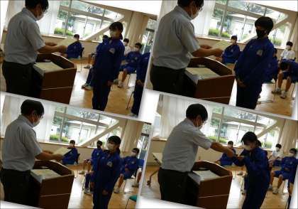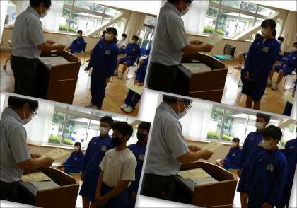 本日のお昼休みに西会議室にて第2回表彰式を行いました。今回は、西部地区ソロコンテスト、県ソロコンテスト、県春季体操競技大会、群馬県体操大会、県春季水泳競技大会、市民陸上競技大会、県春季陸上競技大会の表彰が行われました。
