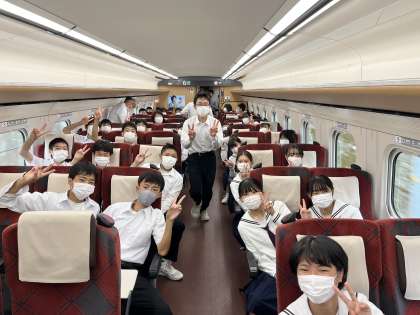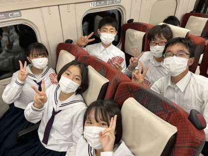 新幹線の車内で楽しく過ごしています。 ワクワクでいっぱいです!