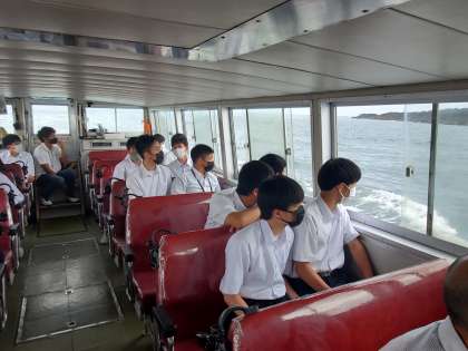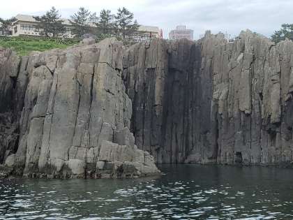 波に揺られながら、いろいろな岩を見ました。 最後の写真、恐竜岩です。恐竜が見えますか?