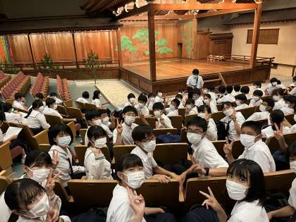 朝から生徒たちは元気です。 本日は金沢市班別活動になります。 まずは能楽堂で能を鑑賞します。