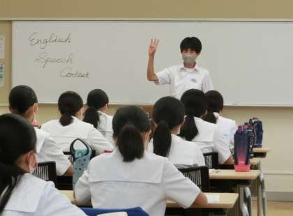 各学年から選ばれた代表による校内英語弁論大会が行われました。自分で考えた原稿の内容を覚え、できるだけ聴衆とアイコンタクトを取りながら英語で話せるように、一生懸命準備して本番に臨みました。緊張しながらも、ジェスチャーを交え、表情豊かに表現していました。