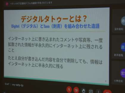 はじめに「SNS その使い方大丈夫?」と題して、本校のICT支援員さんから、お話をいただきました。