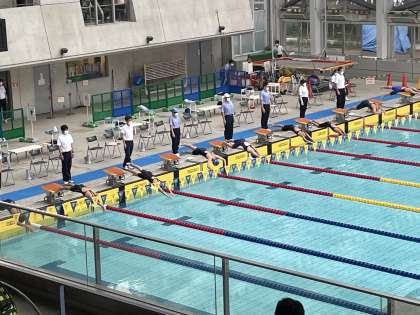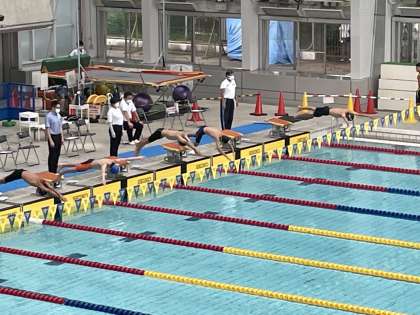 7月27日(水)県中体連総合体育大会(水泳大会) 公開日 2022/07/27 更新日 2022/07/27 できごと 県中体連総合体育大会(水泳大会)が、県営敷島プールで開催されました。初日の今日は、男女50m自由形予選に本校から3名の生徒が出場し、自己ベストを目指して精一杯の泳ぎを見せていました。 水泳大会は29日まで続きます。北中生の健闘を期待しています。