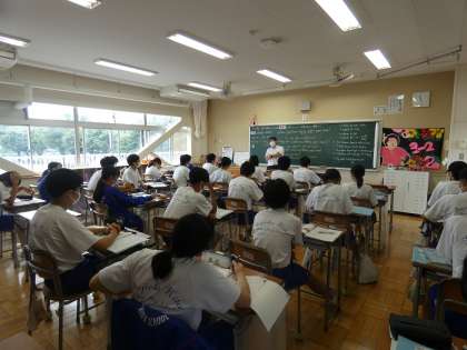 3年生の英語では、広島への原子爆弾でなくなった禎子さんの内容について読み取りました。英語で書かれている文を理解する度に、生徒は戦争の悲惨さを強く感じました。