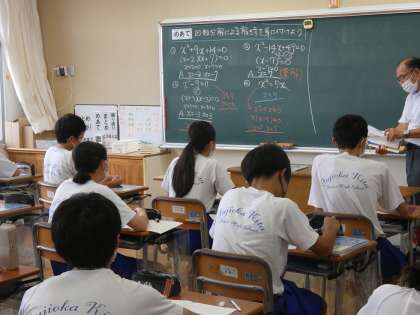 9月5日(月) 3年数学の授業 公開日 2022/09/05 更新日 2022/09/05 できごと 3年生の数学では因数分解の練習問題をたくさん解いていました。初めは手を止め、考え込んでいた生徒も、問題を解いているうちに、解き方をマスターし、どんどん解くスピードが上がっていきました。