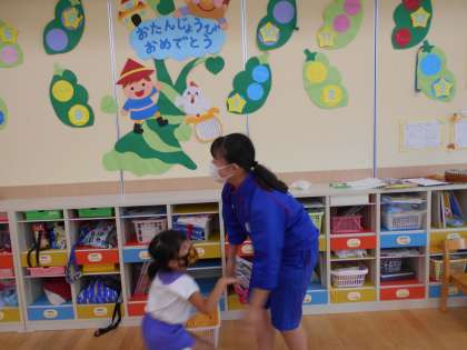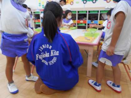 藤岡幼稚園では、園児と一緒にねん土づくりをしたり、遊んだりしていました。園児の安全に気を配りながら補助をしている様子が印象的でした。