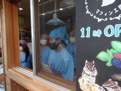 今日は月曜日から準備をしてきたマフィンの販売日でした。お客さんへの接客も慣れてきたようで、役割を分担しててきぱきと仕事を行っていました。12時過ぎに伺ったのですが、すでに売り切れてしまっていました。予約が必須のようですね。