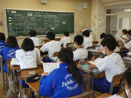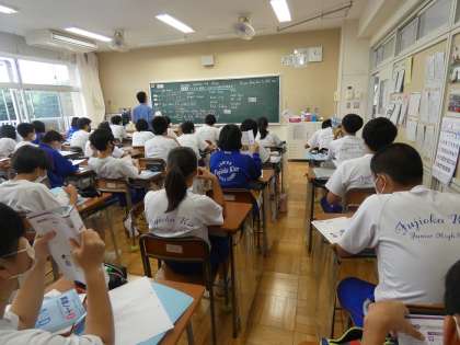 9月8日(木) 3年生英語の授業 公開日 2022/09/08 更新日 2022/09/08 できごと 教室を覗くと、3年生が呪文のように英文を繰り返し読んでいました。 今日の授業では禎子さんが病室で鶴を折り続けていた理由を英文から読み取りました。 その後、何度も本文を読み、時には本文を隠し、一生懸命に覚えていました。