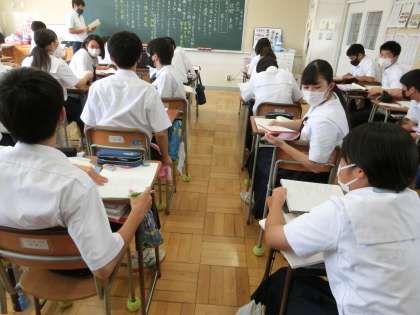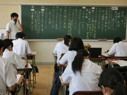 9月14日(水) 3年生国語の授業 公開日 2022/09/14 更新日 2022/09/14 できごと 魯迅作「故郷」の授業です。今日は、物語のあらすじを捉えました。文章から読み取れる登場人物の様子や、そこからわかることなどを、友達と考えを交流させながら次々と挙げていました。