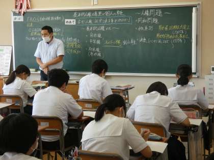 9月16日(金) 3年生社会の授業 公開日 2022/09/16 更新日 2022/09/16 できごと 3年生の社会では「基本的人権の尊重と個人の尊重」について学習しました。この機会を通して生徒は社会的な人権問題から身近な人権問題まで考えを深めていきます。