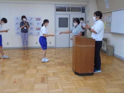 9月16日(金) 市英語弁論大会結果発表 公開日 2022/09/16 更新日 2022/09/16 できごと 7月に行われた校内英語弁論大会で学校代表になった生徒9名は、市の大会に向けて夏休みから熱心に練習を積み重ねてきました。昨日行われた市の大会は、感染症対策のため事前に録画したビデオを使っての審査でしたが、1人1人の素晴らしいスピーチは審査をしてくださった方にも届いたと思います。今日は全員を集めて結果発表を行いました。全員の努力に対して、大きな拍手が贈られました。