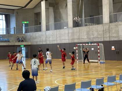 9月19日(月) 中体連秋季大会3日目 ハンドボール 公開日 2022/09/19 更新日 2022/09/19 できごと 新人大会も3日目。ここまで各競技で北中生の活躍が続いています。今日はハンドボールの大会が行われました。西中との対戦は1点を争うシーソーゲームでしたが、粘り強いプレーで見事勝利をつかむことができました。