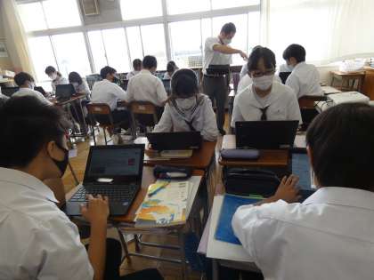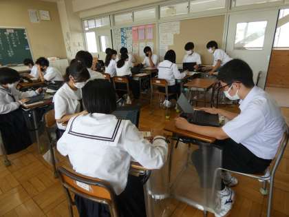 2年生の国語の授業は意見文を書く学習をしています。自分の主張と根拠を結びつけ、その根拠が適切か友達にアドバイスをもらい自分の意見文に活かしていきます。