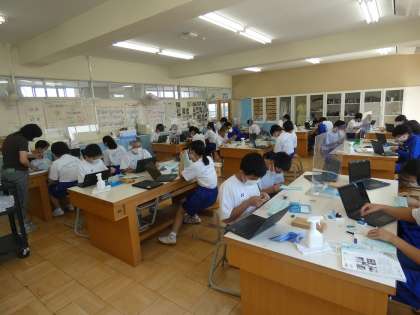 9月26日(月) 1年生美術の授業 公開日 2022/09/26 更新日 2022/09/26 できごと 1年生の家庭科ではクロームブックでまつり縫いの動画を確認しながら、実際にまつり縫いに挑戦していました。スイスイ縫い上げる生徒から針に糸を通すことに苦戦している生徒まで、様々でしたが、先生が提示したまつり縫い動画が効果を発揮していました。
