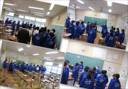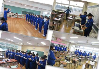 本日4校時、各クラスが合唱コンクールに向けて思い思いの時間を過ごしていました。パート練習に力を入れているクラス。全員で合唱しているクラス。作戦会議を行っているクラス。クラスの歌う様子を動画で撮影し、それを観ながら改善点を探るクラス等、各クラスで学級役員や指揮者、伴奏者が担任と協力しながら活動を進めていました。