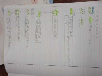 10月14日(金) 1年生国語の授業 公開日 2022/10/14 更新日 2022/10/14 できごと 1年生の国語では「原因と結果の関係をとらえる」とのめあてで「原因」と「結果」の正しい結びつきについて考えました。生徒は問題をじっくりと考え、原因と結果が正しく結びついているのかを判断しました。思考が鍛えられる授業でした。