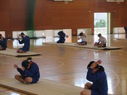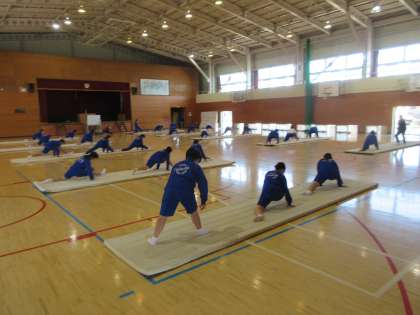 10月19日(水) 3年生体育の授業 公開日 2022/10/19 更新日 2022/10/19 できごと 3年生の体育の授業では、マット運動に取り組んでいます。怪我をしないよう、準備運動を入念に行いました。