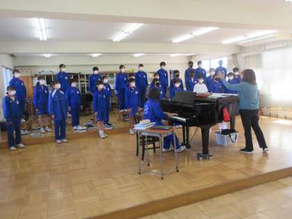 10月19日(水) 2年生音楽の授業 公開日 2022/10/19 更新日 2022/10/19 できごと 北斗祭に向け、合唱練習にも力が入っています。 音楽室から2年生の歌声が聞こえてきました。歌の完成度がぐーんと上がってきた印象を受けました!