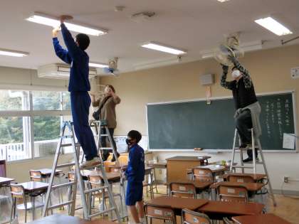 参加者の皆さんには、校舎内のガラス拭き、扇風機やエアコンフィルター・蛍光灯の掃除、校舎外の側溝掃除など、それぞれの持ち場で一生懸命に作業をしていただきました。汗をかいて作業をする生徒たちのすがすがしい表情が印象的でした。参加いただいたみなさま、本当にありがとうございました。