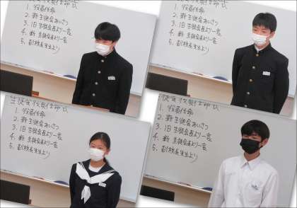 続いて旧生徒会長から新生徒会に向けたエールの言葉をもらい、最後に新生徒会長があいさつしました。