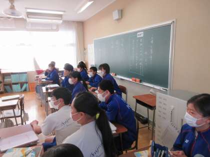 11月18日(金) 2年生国語の授業 公開日 2022/11/18 更新日 2022/11/18 できごと 「根拠を吟味し、討論することでテーマについて多角的に捉え自分の考えを深めたり広げたりする。」 2年生の国語では、これまで準備してきたテーマについての主張や反論を生かし、実際に討論会を行いました。源平合戦のように教室を2つに分け、自分の考えを堂々と主張していました。