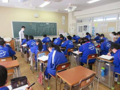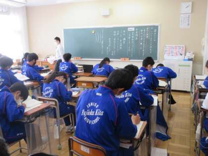 11月18日(金) 2年生国語の授業 公開日 2022/11/18 更新日 2022/11/18 できごと 「冒頭部分にはどのようなことが描かれているのだろうか?」 2年生の国語では平家物語の有名な冒頭の内容について学習していました。先生が「小学校でもやったよね」と確認すると、暗唱もできる生徒もいました。生徒が平家物語を読むことを通して、冒頭に描かれている無常観等について考えを深めてくれることを期待しています。