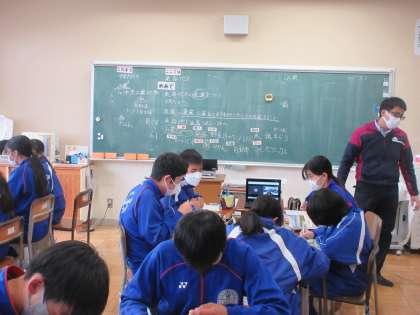 12月6日(火) 2年生社会の授業 公開日 2022/12/06 更新日 2022/12/06 できごと 「東海地方の産業について調べよう」 2年生の社会科の授業では、東海地方の農業、工業、漁業等の産業について学習しました。 「静岡ではどうしてお茶の生産が盛んになったのだろう?」という課題に対して、自分の考えをもち、グループで意見交換しました。