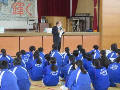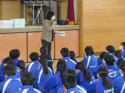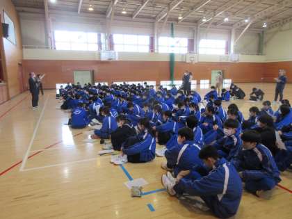 今日の4校時に3年生は体育館にて学年集会を行いました。